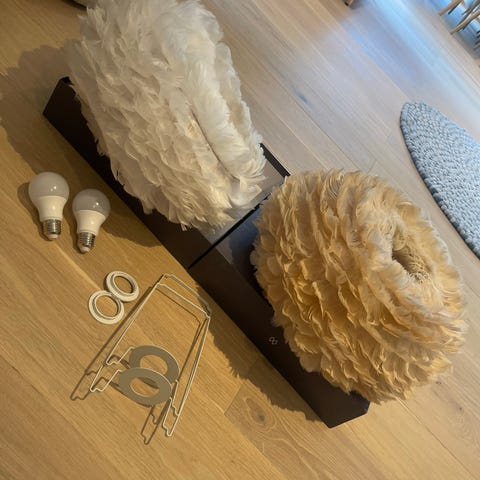 Selger 2 flotte bordlamper fra Hm home. Metall base trukket med stoff.
