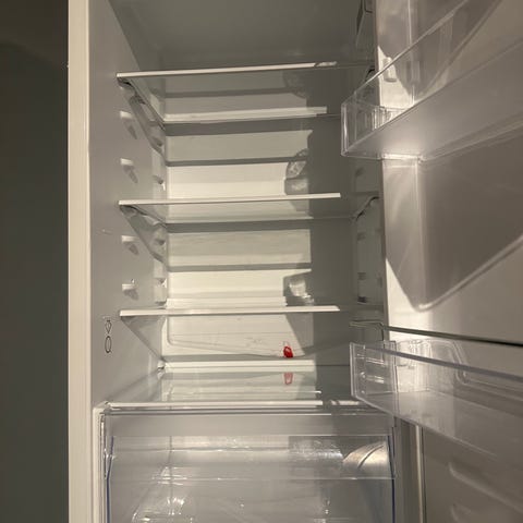 Siemens kombiskap i rustfritt stål med kjøleskap og fryser i ett. Utstyrt med noFrost-teknologi for å forhindre isdannelse. Innvendig har skapet flere hyller og skuffer for organisering av matvarer.
