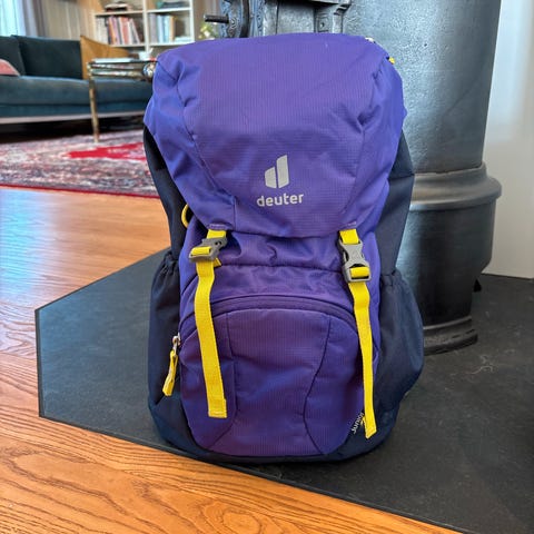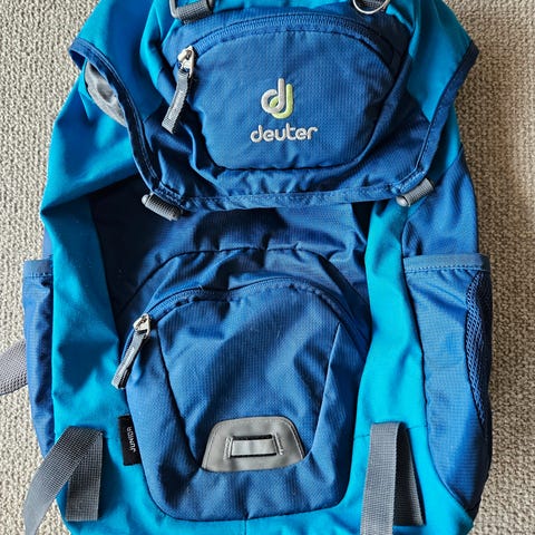 Deuter Kid Comfort barneryggsekk i oransje og grå farge. Ryggsekken er designet for barn og har justerbare stropper for komfort og sikkerhet under bruk.
