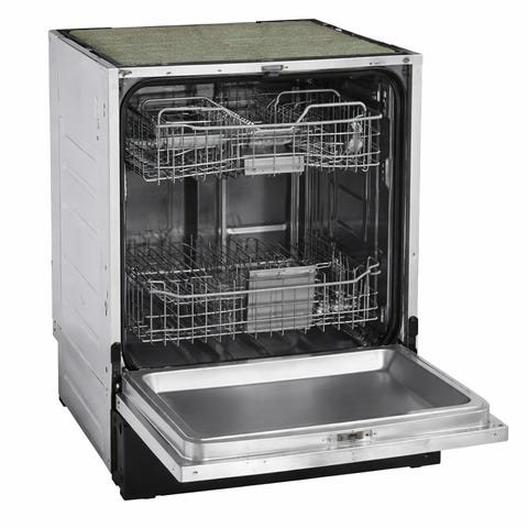 Miele integrert oppvaskmaskin. Designet for å integreres i kjøkkeninnredning, med standard funksjoner for oppvask av servise og kjøkkenutstyr.