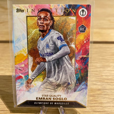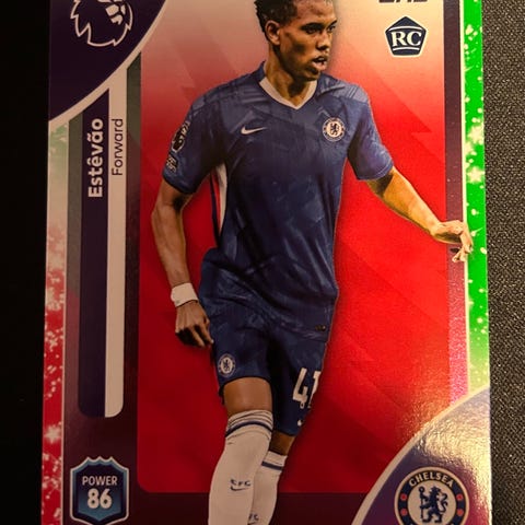 Topps Premier League Youssef Chermiti fotballkort med bilde av spiller i Everton-drakt, posisjon som forward. Kortet viser spillerens kraftnivå (Power 76) og er merket for sesongen 2025/26.