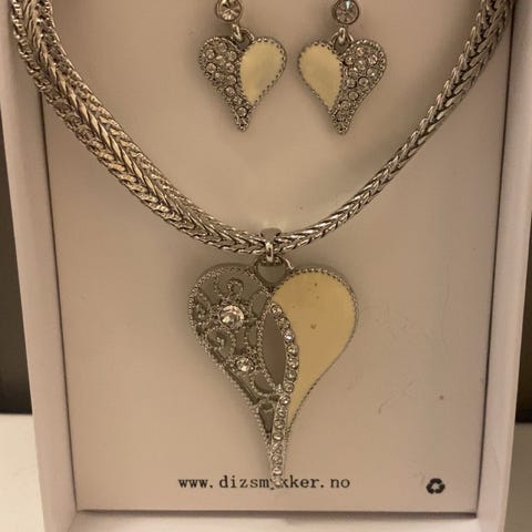Smykkesett med øredobber og kjede. Solid. Veldig lit brukt, fremstår som ubrukt/nytt