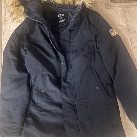 Svea Vinterjakke for kvinner i størrelse L. Jakken er svart og fyllet er av polyester. Den har hette med pelskant og lommer. Egnet som ytterjakke for kalde værforhold.