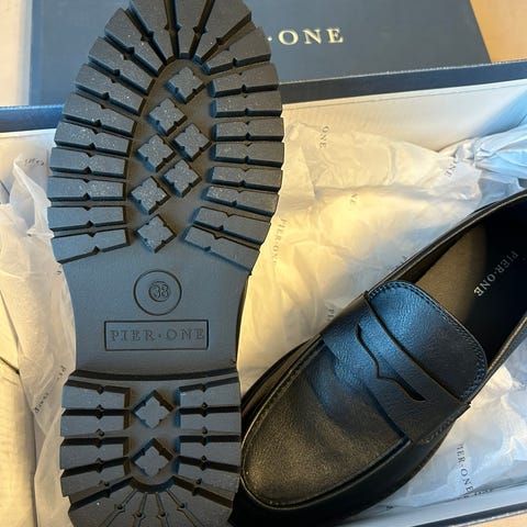 Selger et par nye og ubrukte svarte loafers med detaljer fra ASOS. Kjøpt for 260kr i November 2025
