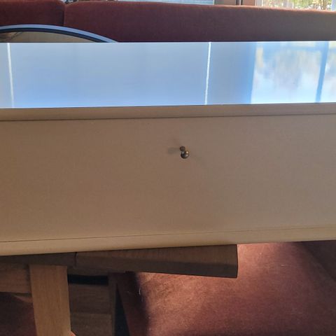 Pent brukt hylle/skuff(modul) fra det danske merket Mistral. Hvit med grå skuffer. Det er noen bruksmerker for det meste på undersiden av hyllen, se bilder.