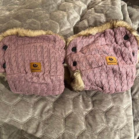 Selger helt nye og uåpnede vognvotter fra Easygrow med myk og varm fuskepels på innsiden. Perfekt for trilleturer på kalde dager – holder hendene varme uten behov for hansker.