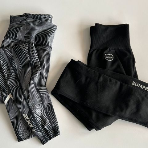 Svart treningstights fra 2XU med svarte detaljer. Den har knyting i midjen. Alle detaljene er i perfekt stand utenom den bak (siste bildet), den er litt slitt. Ellers er alt i god stand. Usikker på hvilken modell og størrelse ettersom at lappen/skriften inni er borte, men jeg er ganske så sikker på at det er en S, som også kan passe XS.