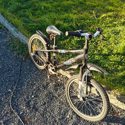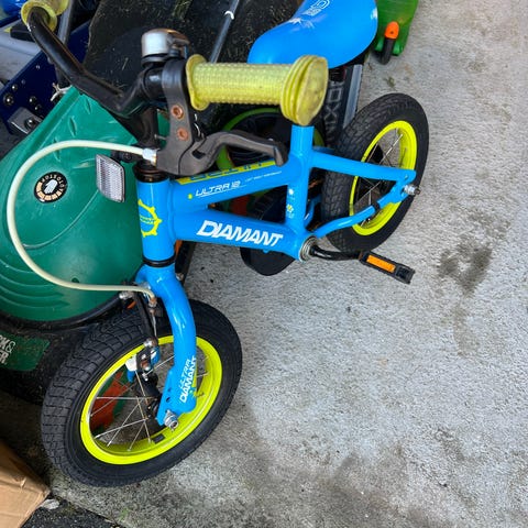 Watt 12" barnesykkel med støttehjul i grønn farge. Sykkelen er designet for barn og har en ramme i solid materiale som gir stabilitet og sikkerhet under bruk.