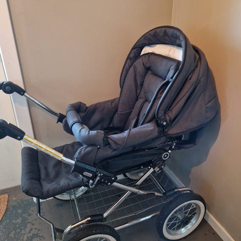 Barnevognen er pent brukt og har kun vært brukt av ett barn i omtrent ett år