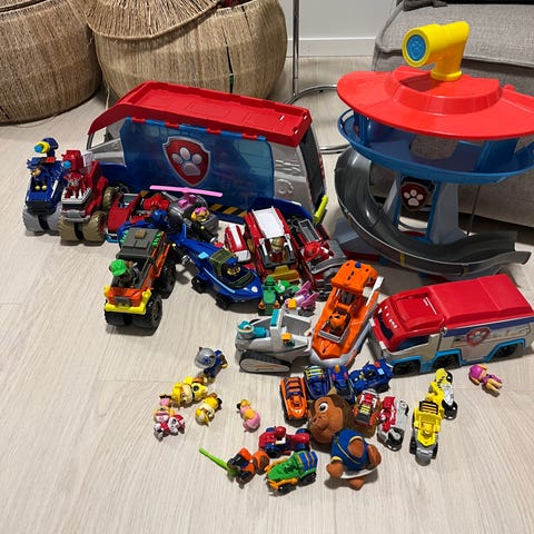 Pent brukt paw patrol samling selges. Alt i god stand og alt virker, har for det meste bare lagt samlet i leke skuffen. Flere av de nyeste bilene og stor Chase bil følger med + ekstra figurer og noe utstyr.