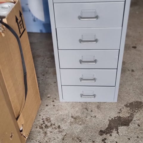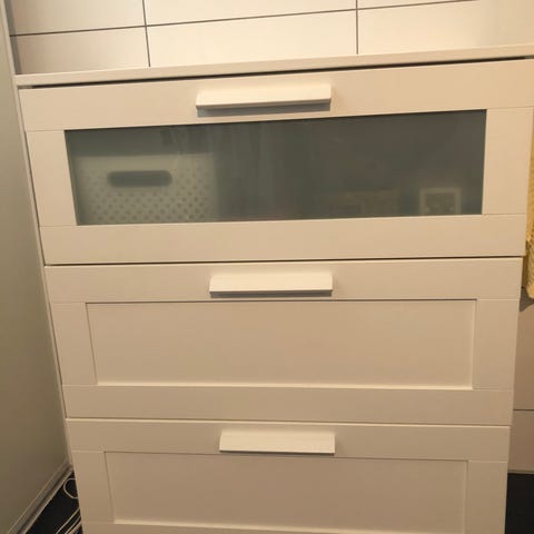 Hvit. Selges uten skuffer, de selges hos IKEA.