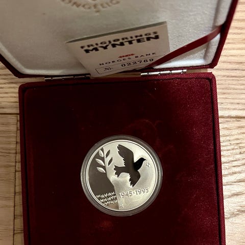 Fredsduen 50kr 1945-1995 sølv proof 925 (15,62 finsølv)