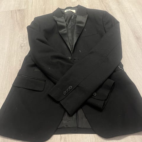 🔹 Detaljer: Jakken har et avslappet, men velkledd uttrykk med to knapper i front og stilige utenpåliggende lommer (patch pockets).
