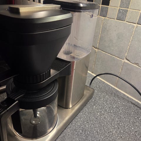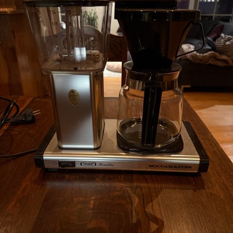 Chef Matteo kaffetrakter med glasskanne og rustfritt stål. Kaffetrakteren har justerbar dosering for kaffe, og er designet for å brygge kaffe med presisjon. Passer til hjemmebruk eller mindre kontormiljøer. Kaffetrakteren er brukt kun et par ganger. Har stått lagret. Et par bittesmå bulker synlig på bilde 3