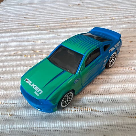 Ford Mustang GT fra Motormax i skala 1:24. Den har stått utstilt i hylla og er pent brukt og i god stand.