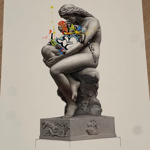 Selger herved et sjeldent kunstverk fra Martin Whatson, verket heter Velociped og er fra 2025.