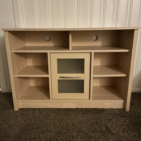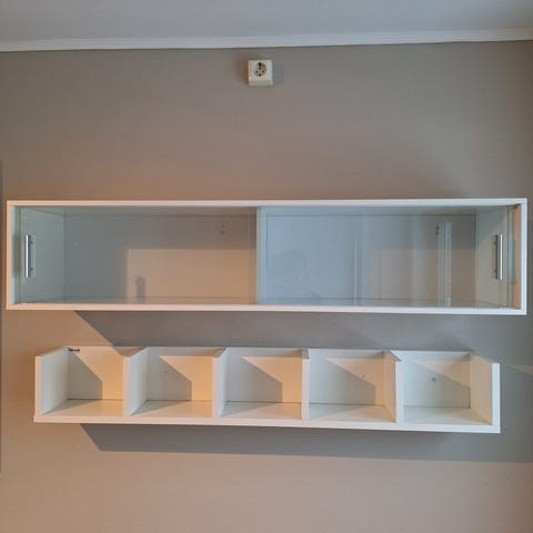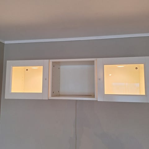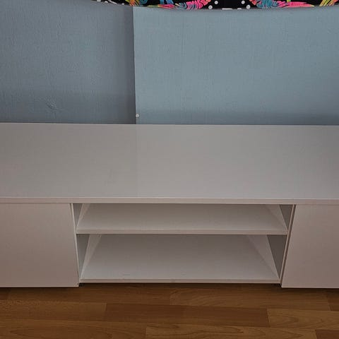 Helt og pent. Skjært ut plass til stikkontakter på bakplate i midten nederste hylle. Pris kan diskuteres ved hurtig avgjørelse.