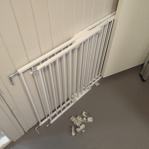 Vært i bruk kun ett år nederst i trappen for å forhindre minstemann å klatre opp.