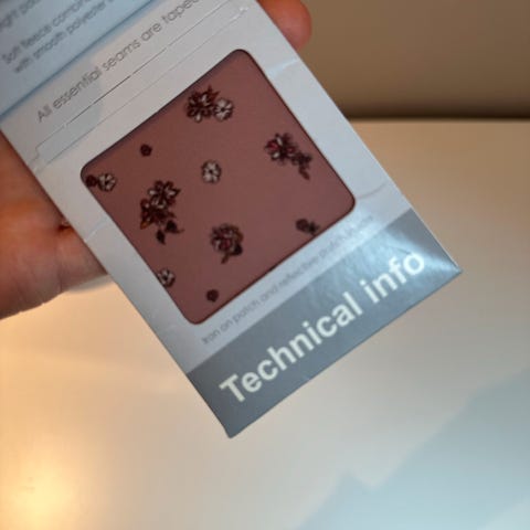 Ingen hull. Den trenger definitivt å friskes opp; den har ikke blitt vasket. Jeg fjernet bare de skitne flekkene på knærne, som vist på bildet (våte flekker på det svarte stoffet). Dressen har også fôr, så den kan tas av og brukes lettere, for eksempel om våren.en strikk på beinet mangler