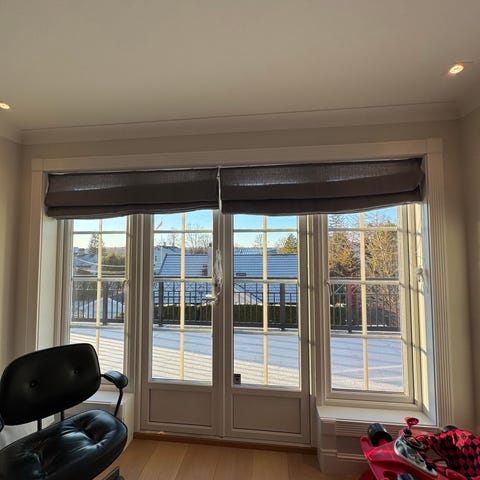 Hvit rullgardin fra Princess tilpasset vindusbredde på totalt 138cm.