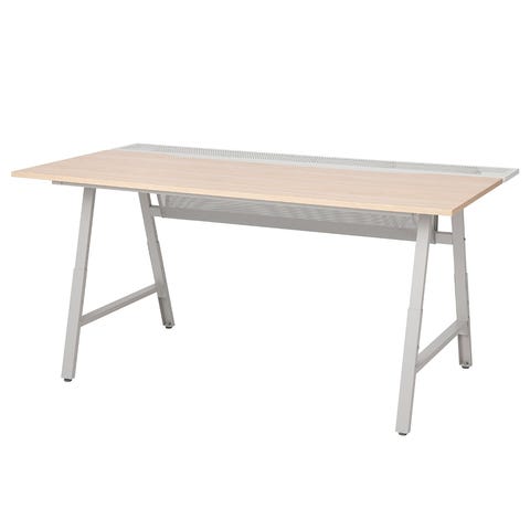 Hev det store, solide UTESPELARE-gamingskrivebordet til den høyden som passer best for deg. Metallnettingen bak på bordplata gir god luftsirkulasjon for å kjøle ned PC-en i kampens hete.