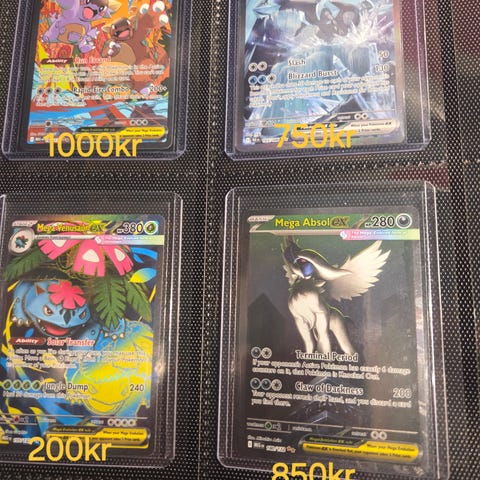 Hei, jeg selger sjeldne Pokemon kort. Prisen finner du på sleeven på kortene