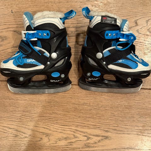 Diverse skøyter justerbare og en hockeykølle(solgt). Se bilder for størrelse og pris.