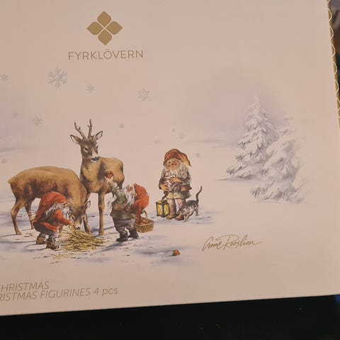 To nisser med kjekke i original eske. Fremstår som nye. Høyde på nissene ca 18 cm. Pris 400,-