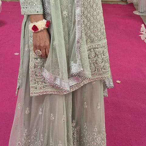 LAST OFFER OFFER!! Dull purple liquid organza saree with zari and stone work - includes a running blouse piece and free petticoat. Brand new not even woren once.