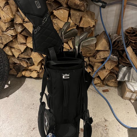 Golfsett med Cobra driver, Wilson jernsett og putter. Callaway bag