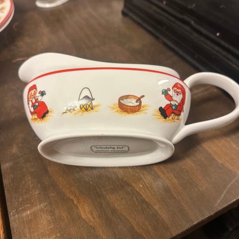 Fin juleskål med nisser og påskrift "God jul". Høyde 9cm. I god stand!