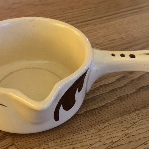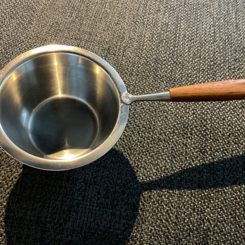 Retro smørsmelter med håndtak i teak. Pent brukt, men har noen merker.
