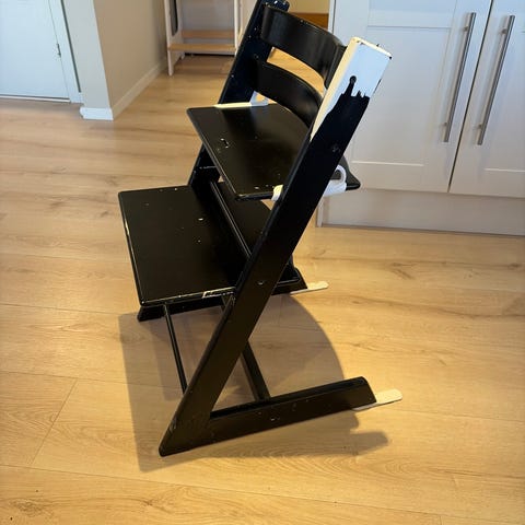 Brett og bøyle til stokke spisestol i god stand. Hvit bøyle, sort brett.