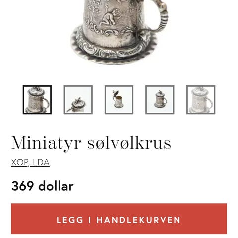 ØLKRUS / Løvekrus i sølv med fantastiske utsmykninger 90% rabatt på nypris !!