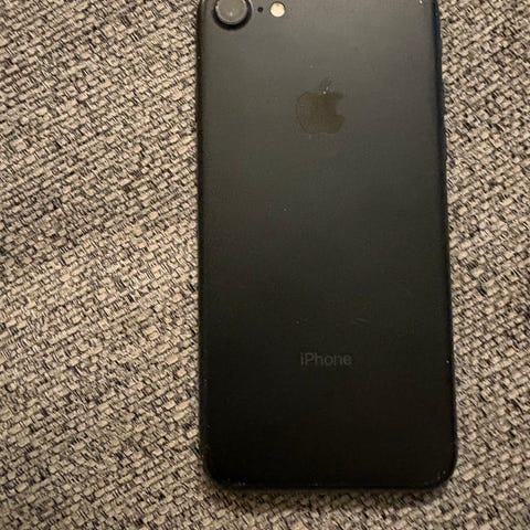 Selger iPhone 7 med 128 GB. Fungerer helt fint, men batteri på 78 % og en liten stripe på skjermen (kun kosmetisk). Nullstilt og klar til bruk.Kommer med deksel
