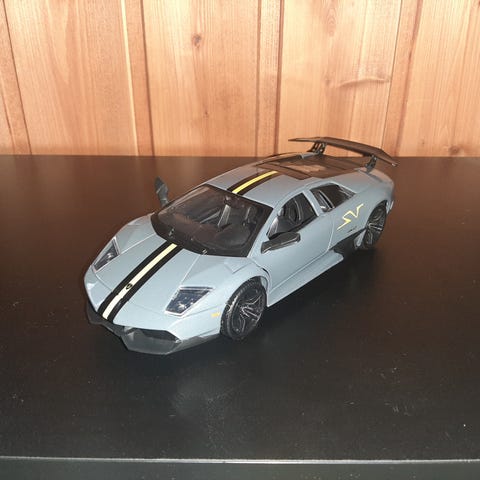 Bugatti Chiron fra Maisto i skala 1:24. Den har stått utstilt i hylla og er pent brukt og i god stand.