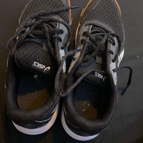 Asics G701V fotballsko i størrelse 42. Designet for bruk i forskjellige sportssammenhenger. Fargene inkluderer hvit, svart og gull. Skoene har snøring og er laget for å gi god passform og støtte under aktivitet.