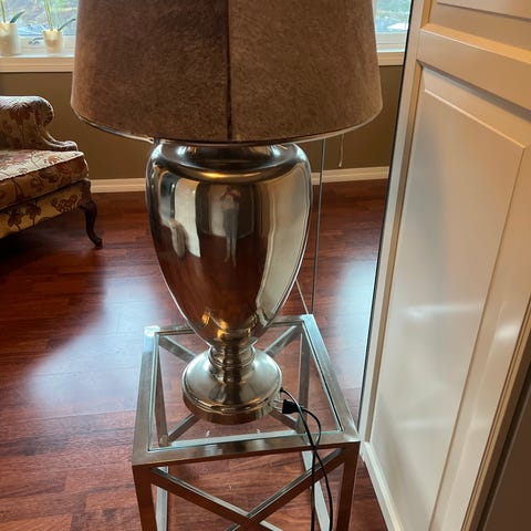 2 stykk flotte bordlamper selges samlet. Sort metallfot med hvit skjerm. Størrelse på skjermen er 30cmx18cm, totalhøyde på lampen er ca 65cm.