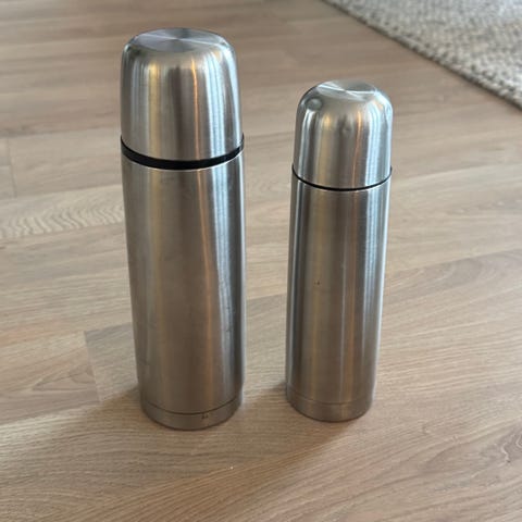 -Termos på 1 liter i rustfritt stål. Lite brukt.