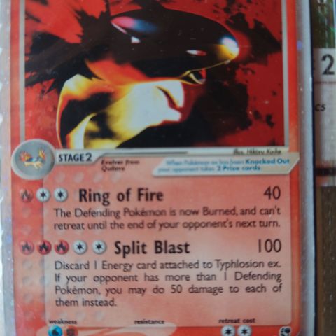 Jeg selger en holo Typhlosion Ex fra Sandstorm for 600 kroner. Jeg har også mye annet Pokemon til salgs, så ta gjerne en titt på mine andre annonser.