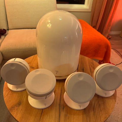 Disse var en del av et hjemmekinoanlegg med to andre høytalere som er solgt, disse funket fint.