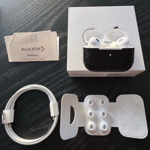 Apple AirPods Pro 2 Headset. Alt funker som det skal, de minste proppene ble gitt bort til en som mistet sine. Selger disse da jeg ikke bruker dem mer.