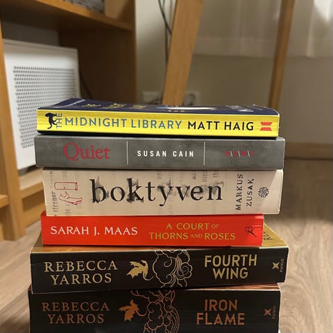 The wicked fate, Game of thrones og Cinder er på engelsk. Resten er på norsk