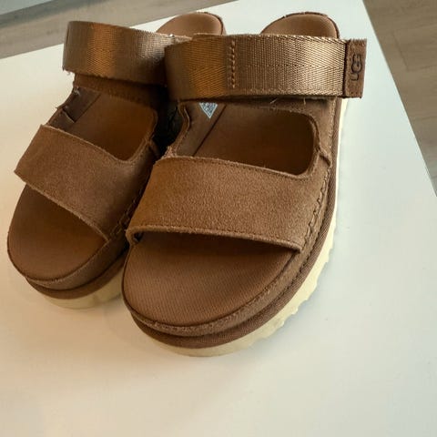UGG støvler i størrelse 38, brun farge. Støvlene har en plattform såle og er foret med mykt materiale for varme og komfort.
