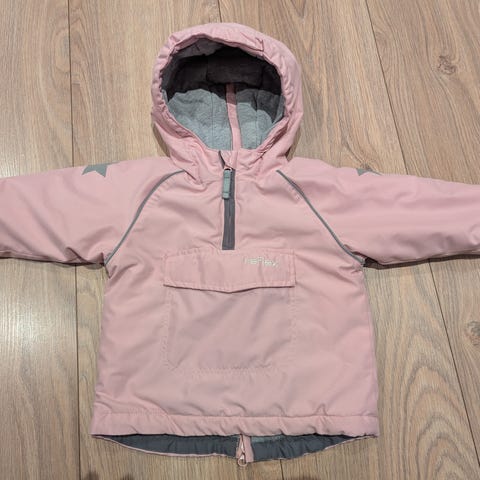 Rosa vinterjakke fra Reflex i størrelse 86. Foret og med åpning bak.