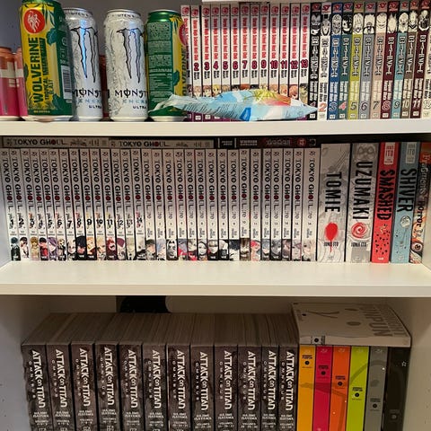 Selger engelske skjønnlitterære bøker av Haruki Murakami og Osamu Dazai.