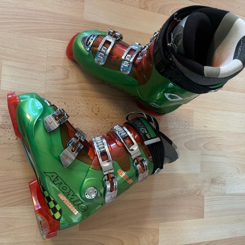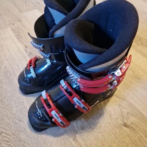 Spennene fungerer som de skal, og støvlene er i grei brukt stand med litt normal kosmetisk slitasje.