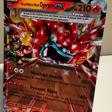 Jeg selger en Wellspring Mask Ogerpon EX fra Prismatic Evolutions for 150 kroner. Jeg har også mye annet Pokemon til salgs, så ta gjerne en titt på mine andre annonser.