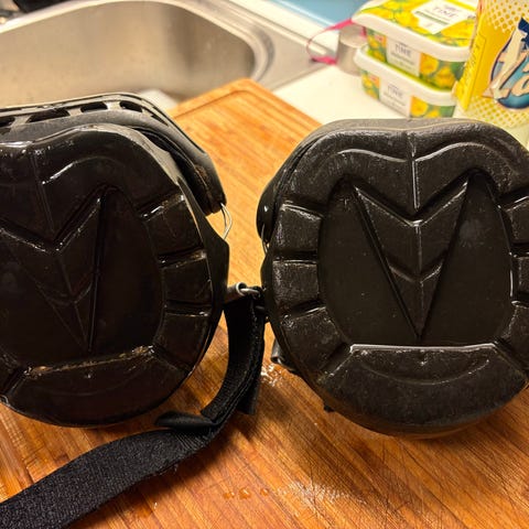 De har skrapemerker rundt om men fungerer helt fint👍🏼 Det gjør borrelåsene også. Følger med nye om man vil bytte til noen med logo.