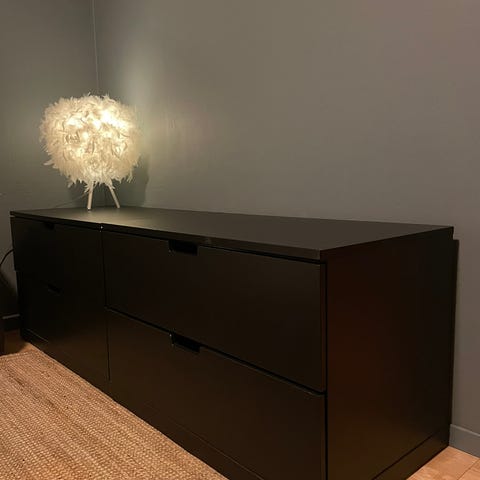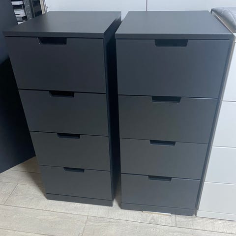 2 NORDLI-modulkommoder i antrasitt, kjøpt nye til 2890,- i mai 2024 (inkludert topplatene/soklene). Noen bruksmerker, men ellers hele og fine. Må hentes og bæres ut selv på Kringsjå (én kort trapp og ellers flatt).